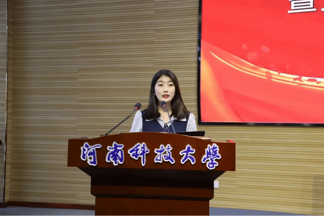 学生代表于子慧上台发言,她分享了关于国家安全的重要思考和感悟,并呼吁青年大学生,应树立并践行国家安全观,履行公民的责任与义务,为国家安全贡献自己的力量。