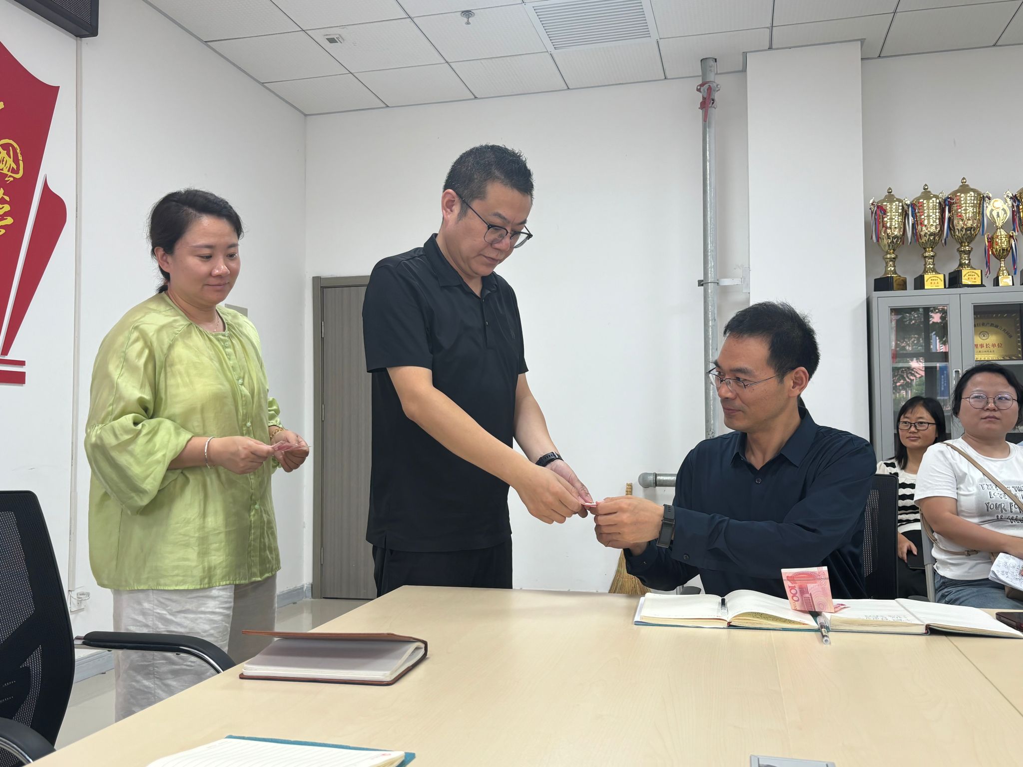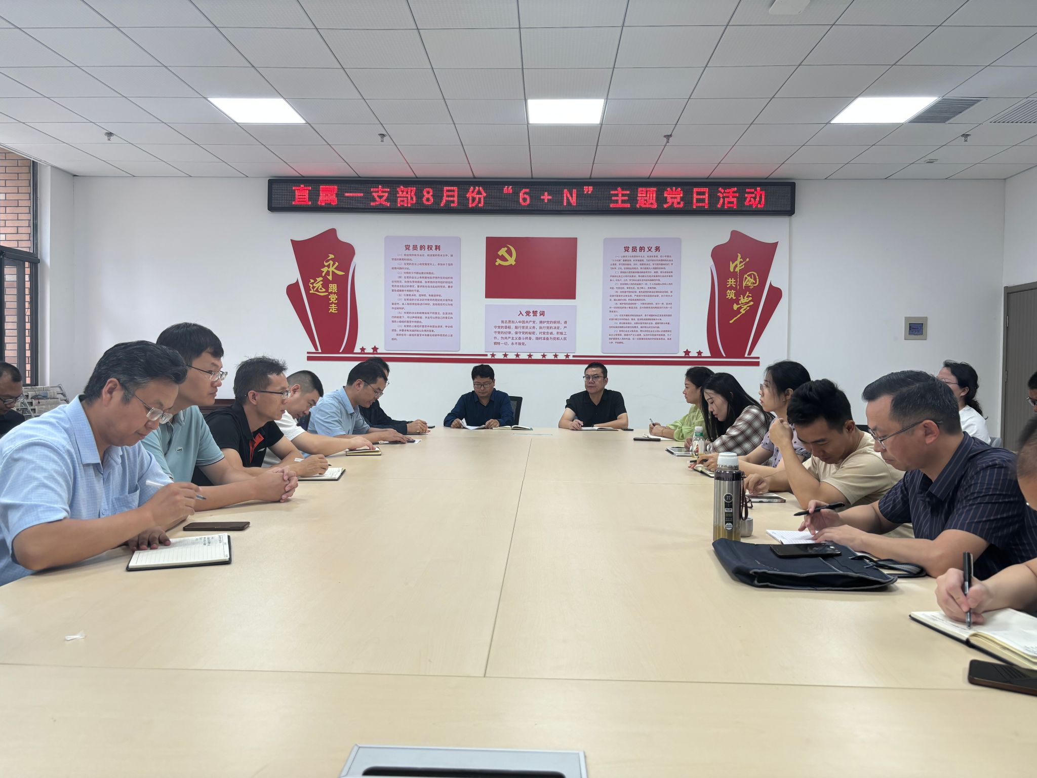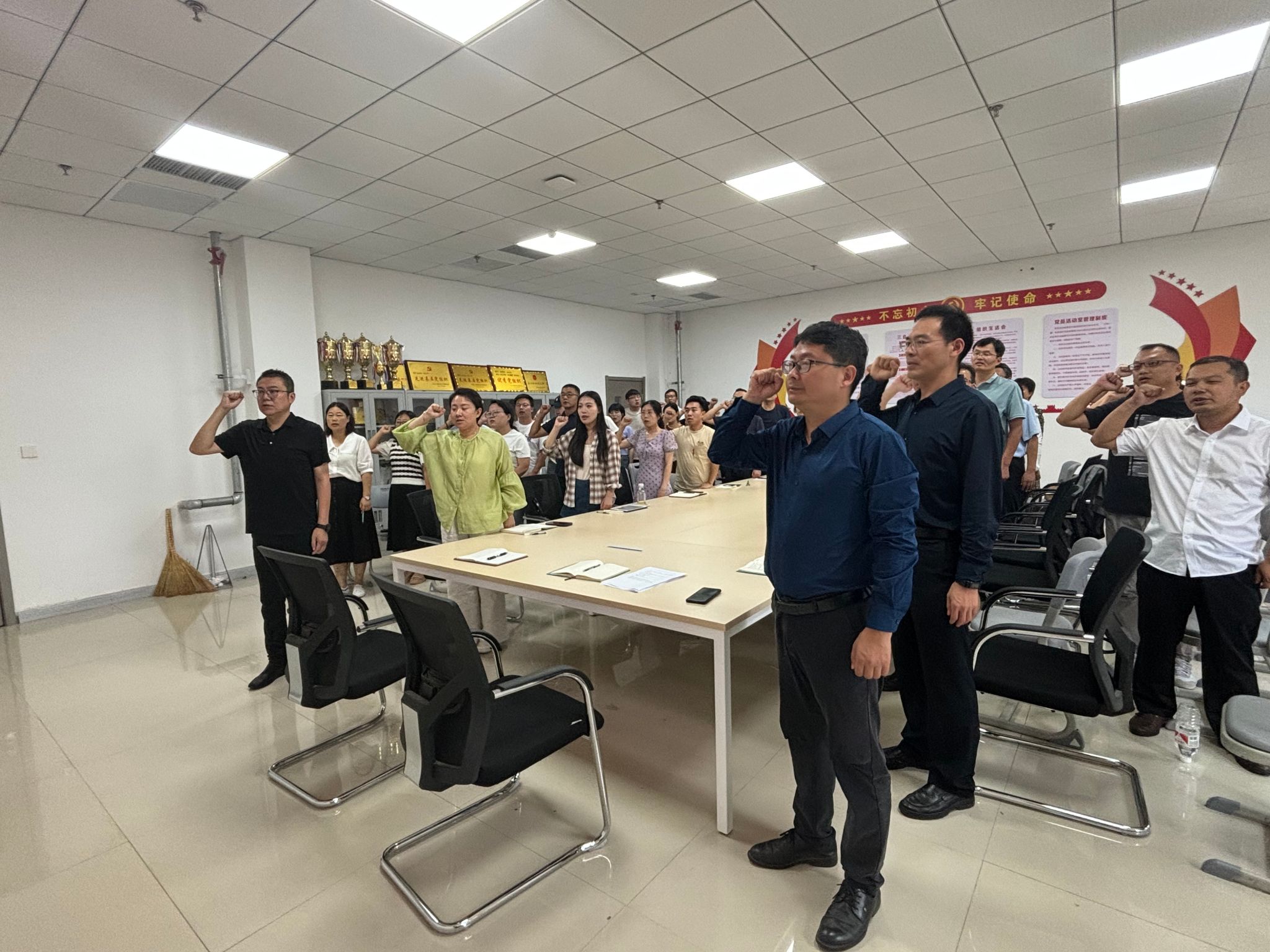 随后,全体党员在齐天锋同志带领下重温了入党誓词,并向组织委员王永志交纳了8月份党费。