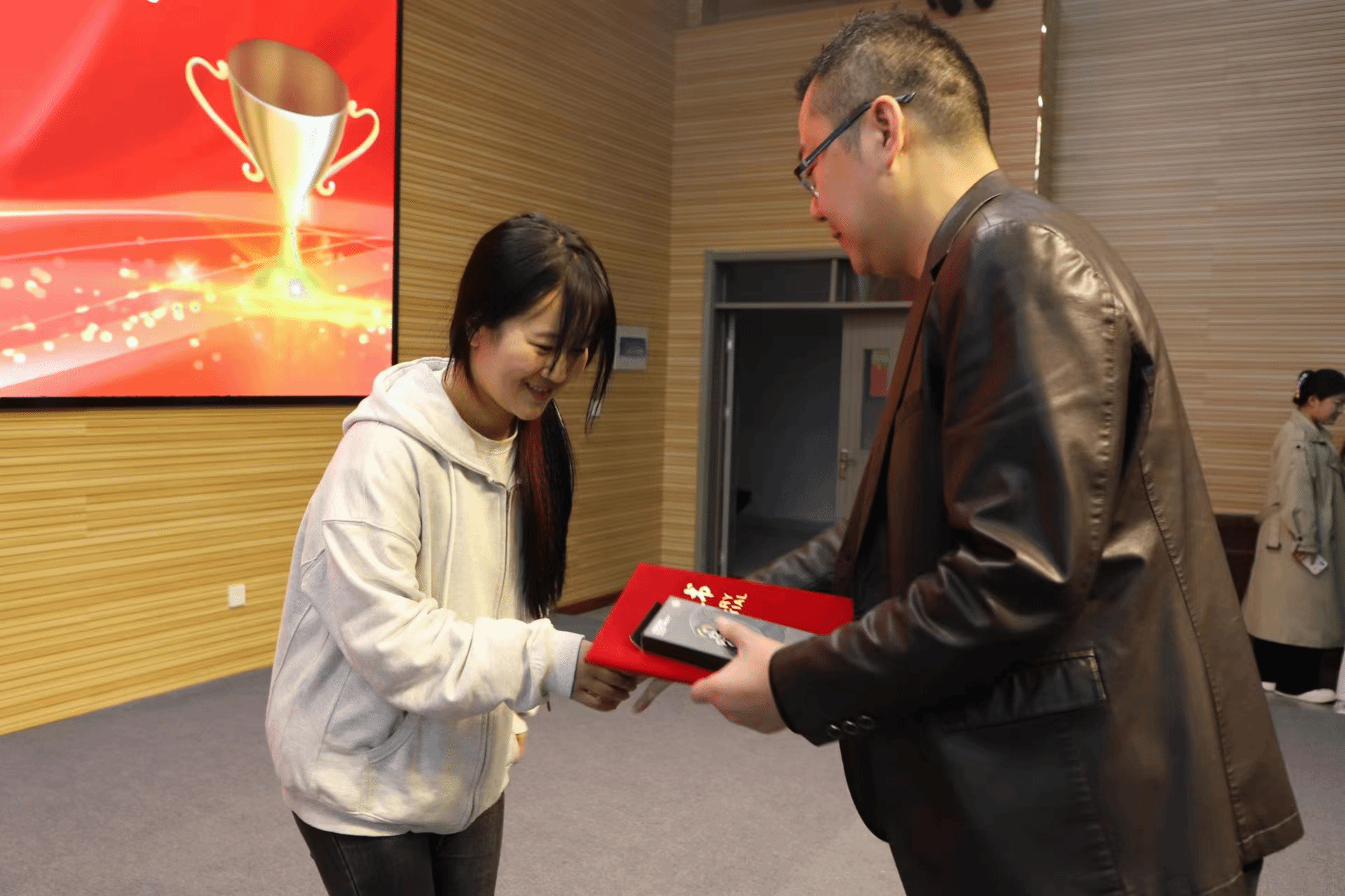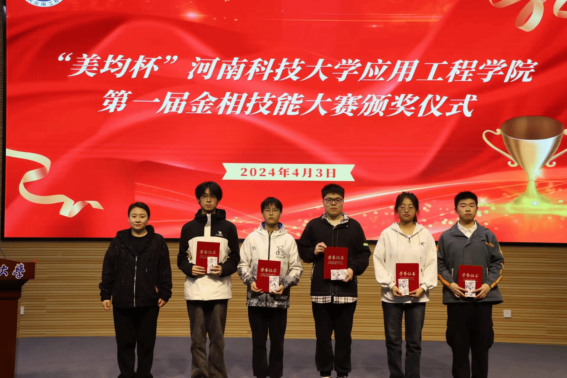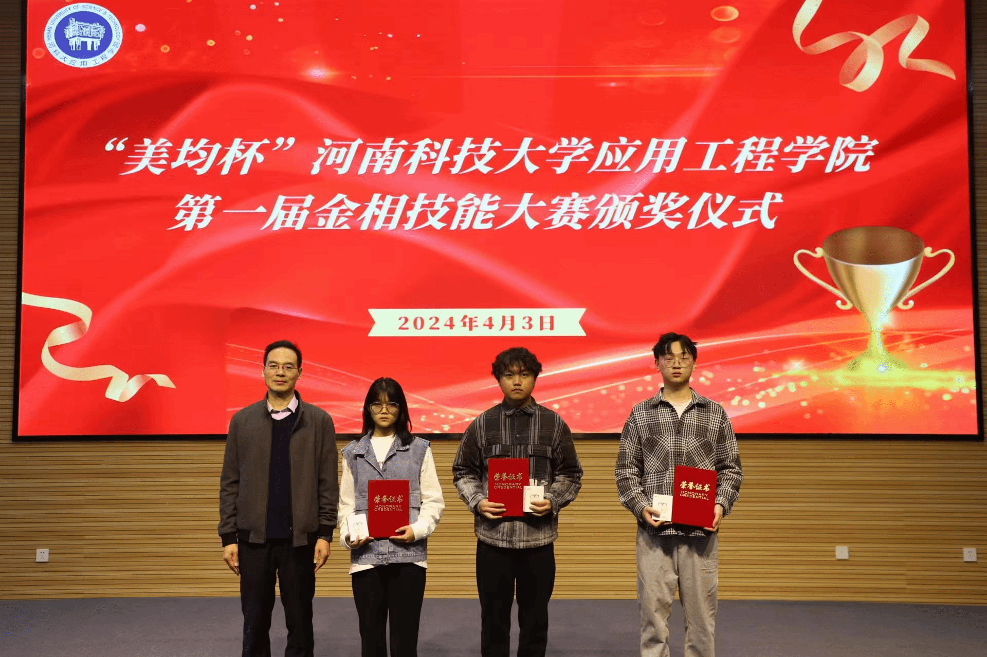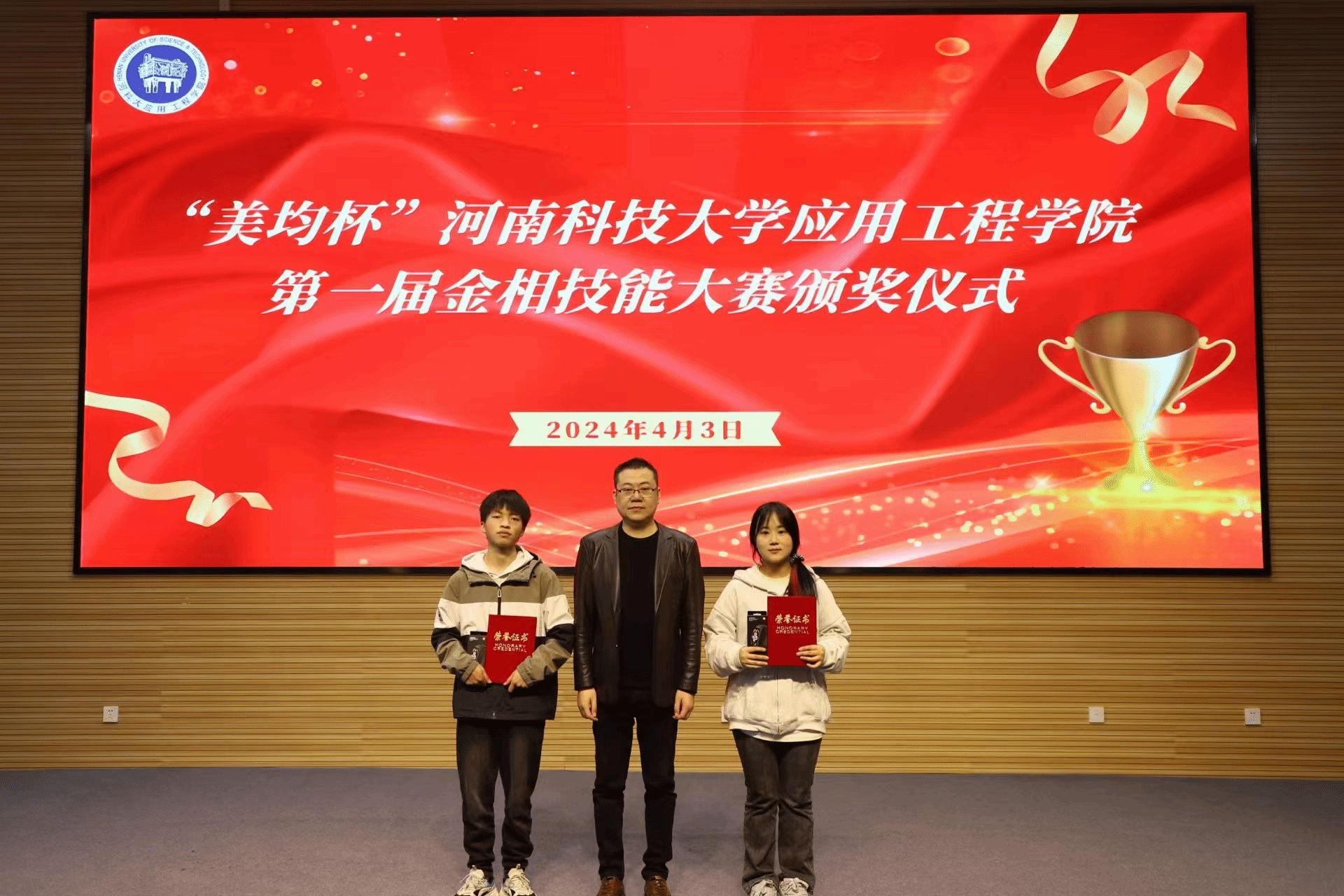 仪式开始,胡三宁向比赛中取得优异成绩的同学们表示祝贺,并宣布获奖同学名单,赵立新、王永志、尤佳丽分别为获奖同学颁发奖项。