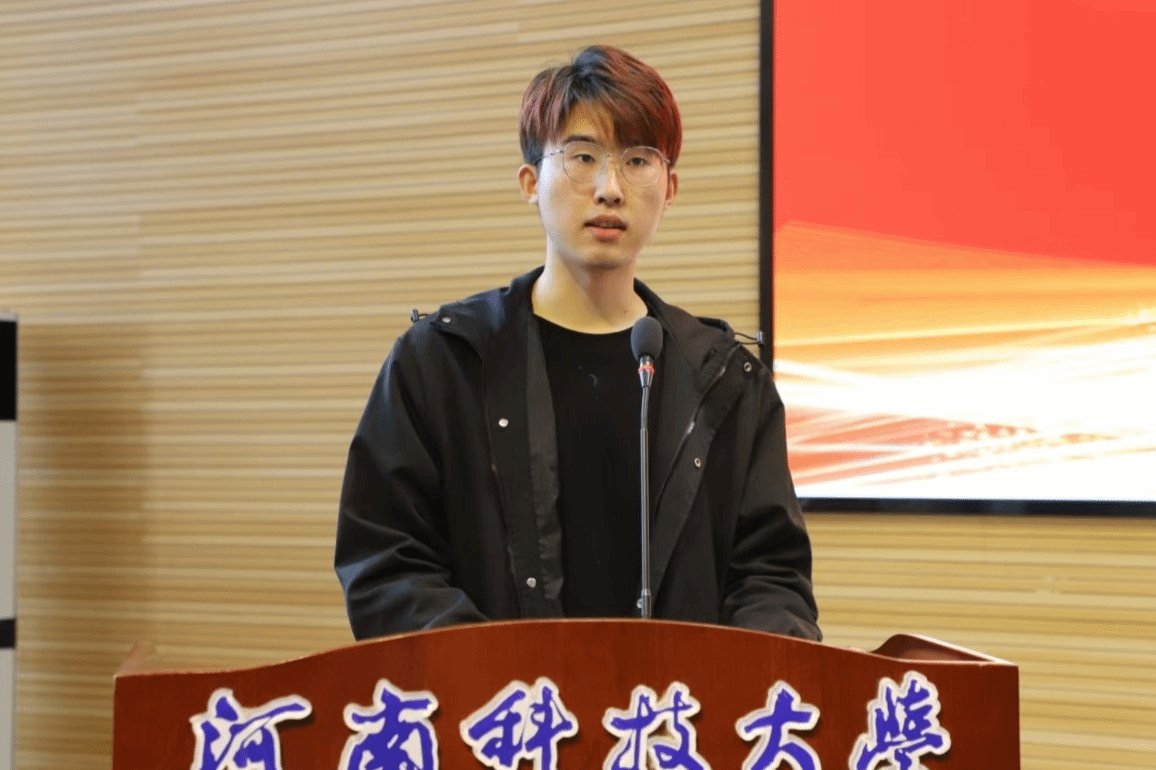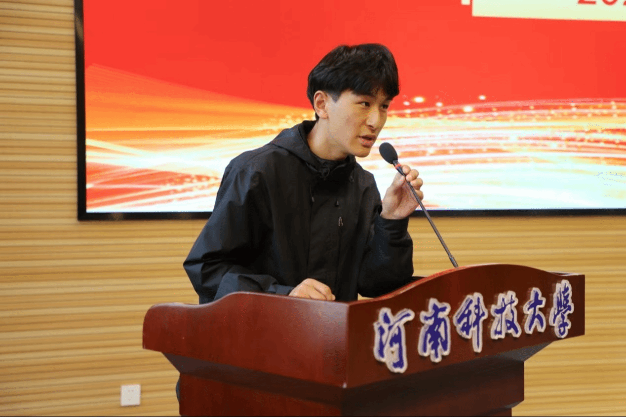 接着,第十五届蓝桥杯国赛一等奖获得者王文兴同学上台发言。他感谢学院提供的学习平台和老师们的悉心指导,从主动学习、持续学习、学习心态、学习方法等方面分享了他的学习心得,并祝愿同学们在下一届“蓝桥杯”大赛中取得更加优异的成绩。