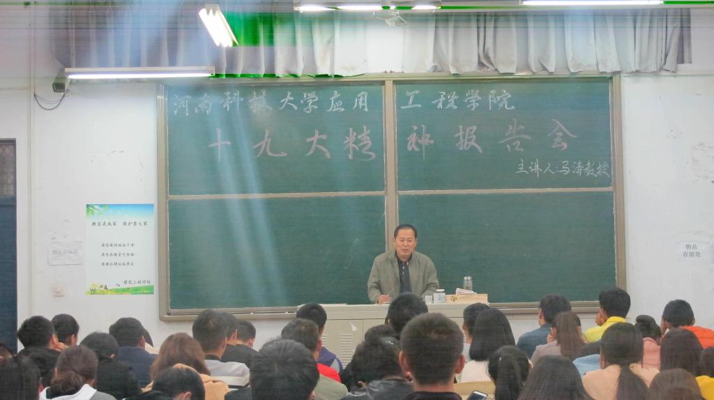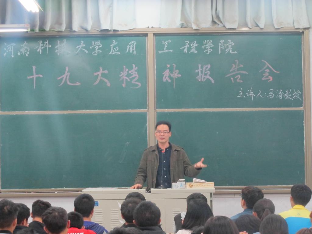 十九大是党在全面建成小康社会决胜阶段、中国特色社会主义进入新时代的关键时期,召开的里程碑意义重要会议。10月26日下午,yl23455永利官网举办十九大精神报告会,由学院行政负责人马涛主讲,组织全体学生干部参加。报告在解读十九大报告的同时,紧密结合青年学子的学习和思想实际,对全体学生干部提出具体要求。报告会由学院学生科长王永志主持,部分辅导员也参加学习报告会。