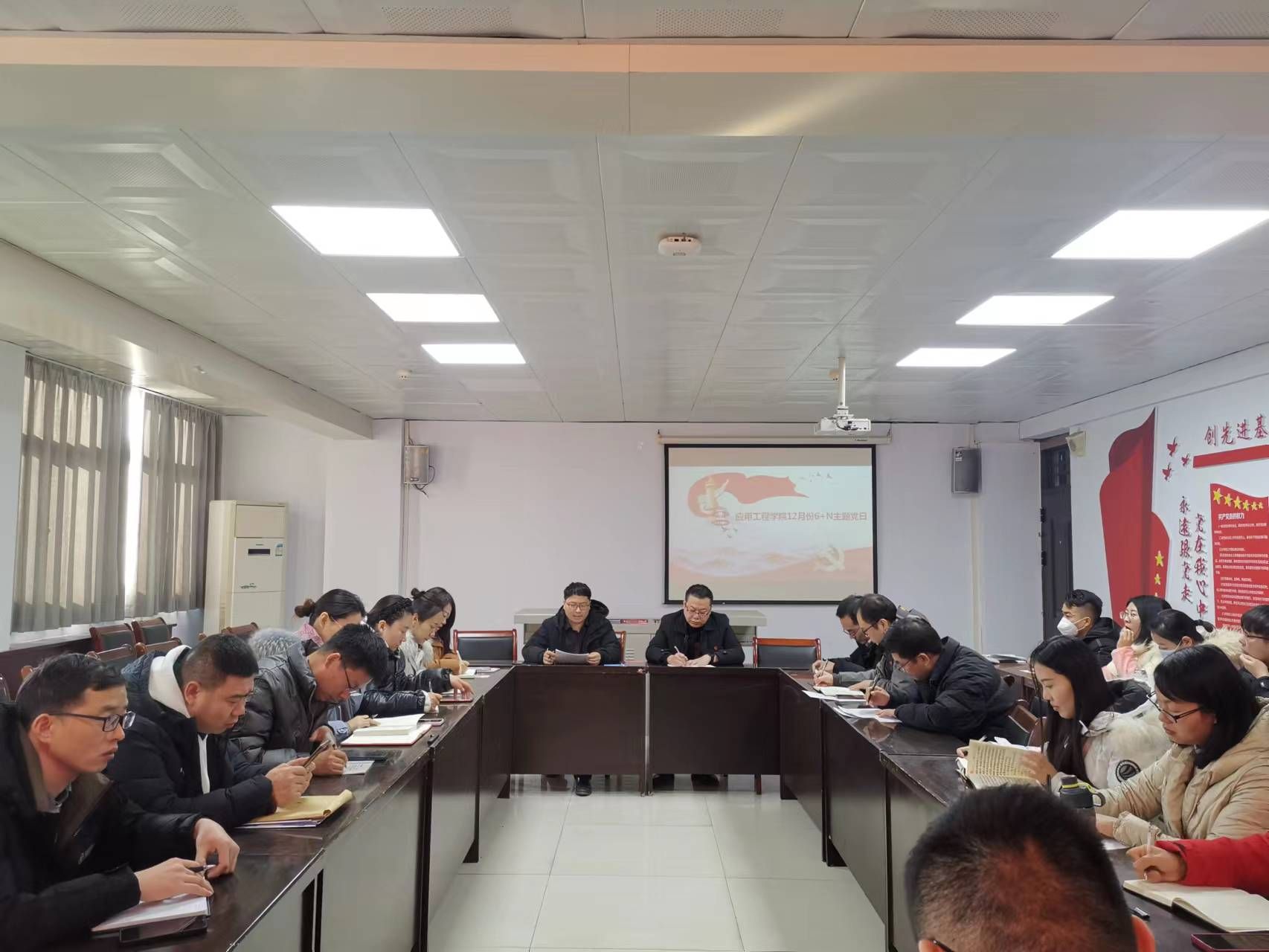 12月25日下午,yl23455永利官网在天鹅湖校区10214会议室召开12月份6+N主题党日活动,全体党员参加此次会议,会议由党委副书记齐天锋主持。