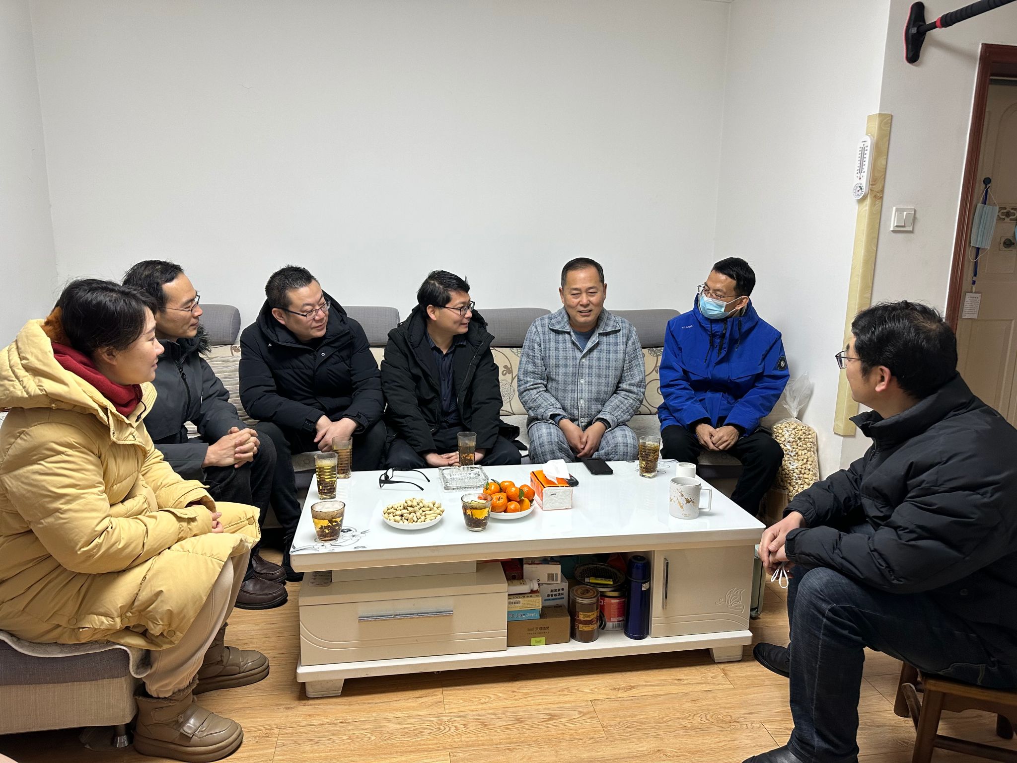 除了走访困难党员,齐天锋带队来到离退休老干部马涛家中,亲切询问他的身体、生活、年货置办情况,送上春节慰问品,祝福他春节愉快,真诚感谢多年来为学校发展作出的重要贡献,并认真听取他的意见建议,也希望他能够继续发挥余热,积极建言献策。马院长对学院的关心和照顾表示感谢,也表示将一如既往地关心支持学院工作,积极发挥余热,为教育事业贡献力量。