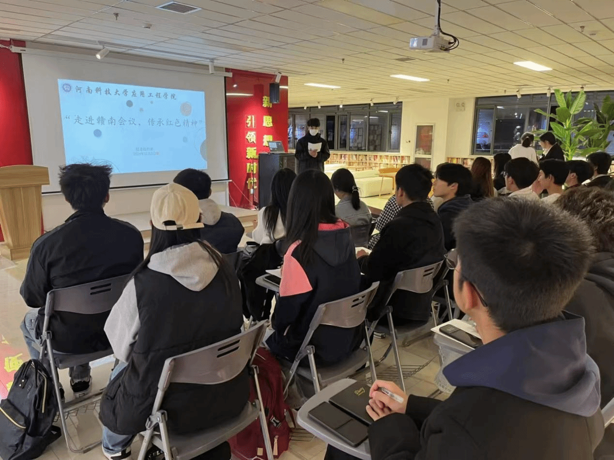 为深入学习习近平新时代中国特色社会主义思想,贯彻落实党的二十大精神,树立“好读书、读好书、善读书”的文明风尚,营造浓厚的全员读书、终身学习的氛围,11月5日晚上,yl23455永利官网团委组织部与自管会新媒体中心在大学生活动中心党团活动室2108开展“走进赣南会议,探寻红色足迹”研讨交流会,各班同学代表参加本次交流会。