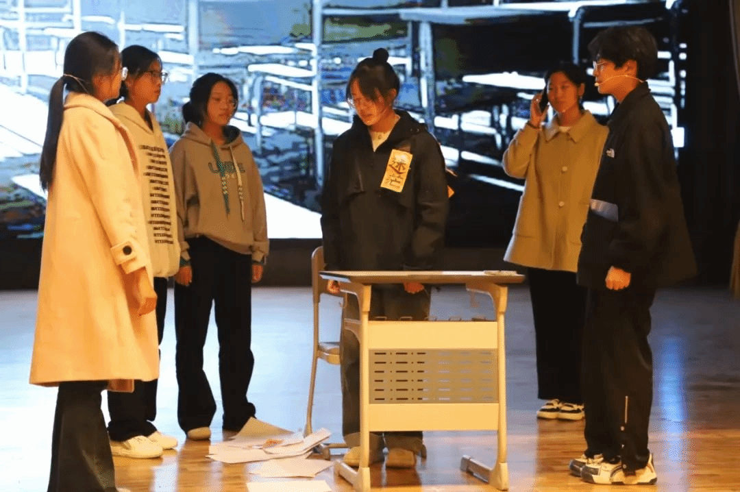 参赛选手围绕大学生常见心理问题展开表演。他们凭借独特视角和灵活的场景切换,生动地展现了角色内心冲突与心路历程。经过初赛的激烈角逐,六支队伍脱颖而出晋级决赛。