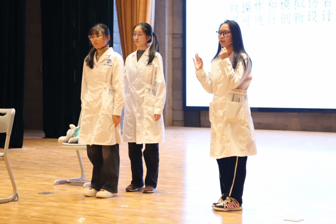 该环节为队伍三人分工合作,共同完成一场海姆利克急救法的情景演绎。演示过程中,主负责人讲解海姆立克急救法的相关知识,另外两名队员则自由创新,演绎出一场有哲理性的急救操作情景,现场导师纷纷给予鼓励与肯定。